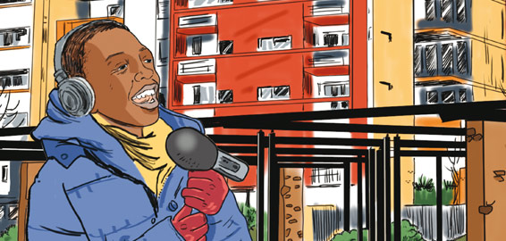 « Boum ! » « Crrrrr… » «Houhou » « Frt-frt » L’exercice consiste à reproduire avec la bouche les sons qu’ils ont enregistrés dans le square. Puis la contrainte est inversée, afin qu’ils miment, en silence, le son de leur choix.