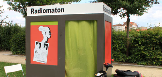 Le Radiomaton en action lors de la fête de quartier des Fougères (Paris 20e) le dimanche 23 juin 2013.