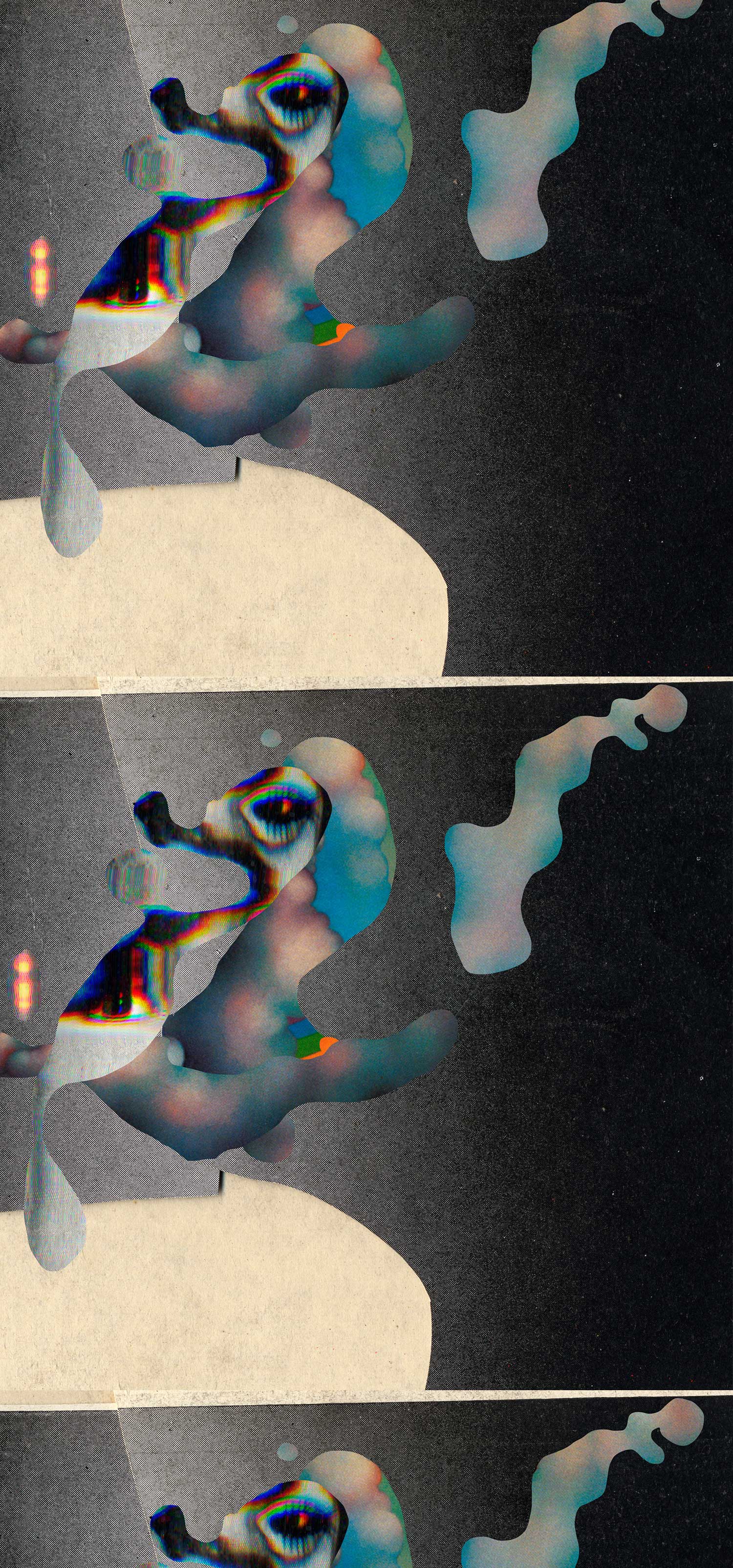 Ce sont ces déplacements qui ont déterminé l’architecture rythmique de Iode. Dans mon écriture, j’ai conservé les effets de perturbations : la fragmentation en différents paragraphes de longueur variable, les variations du blanc typographique entre les signes écrits, les jeux de ponctuation (du flux des mots non ponctués à l’arrêt du mouvement par le signe, en passant par les pauses avec les points de suspension), etc. J’ai cherché à rendre visible l’instabilité du flux de la perception.