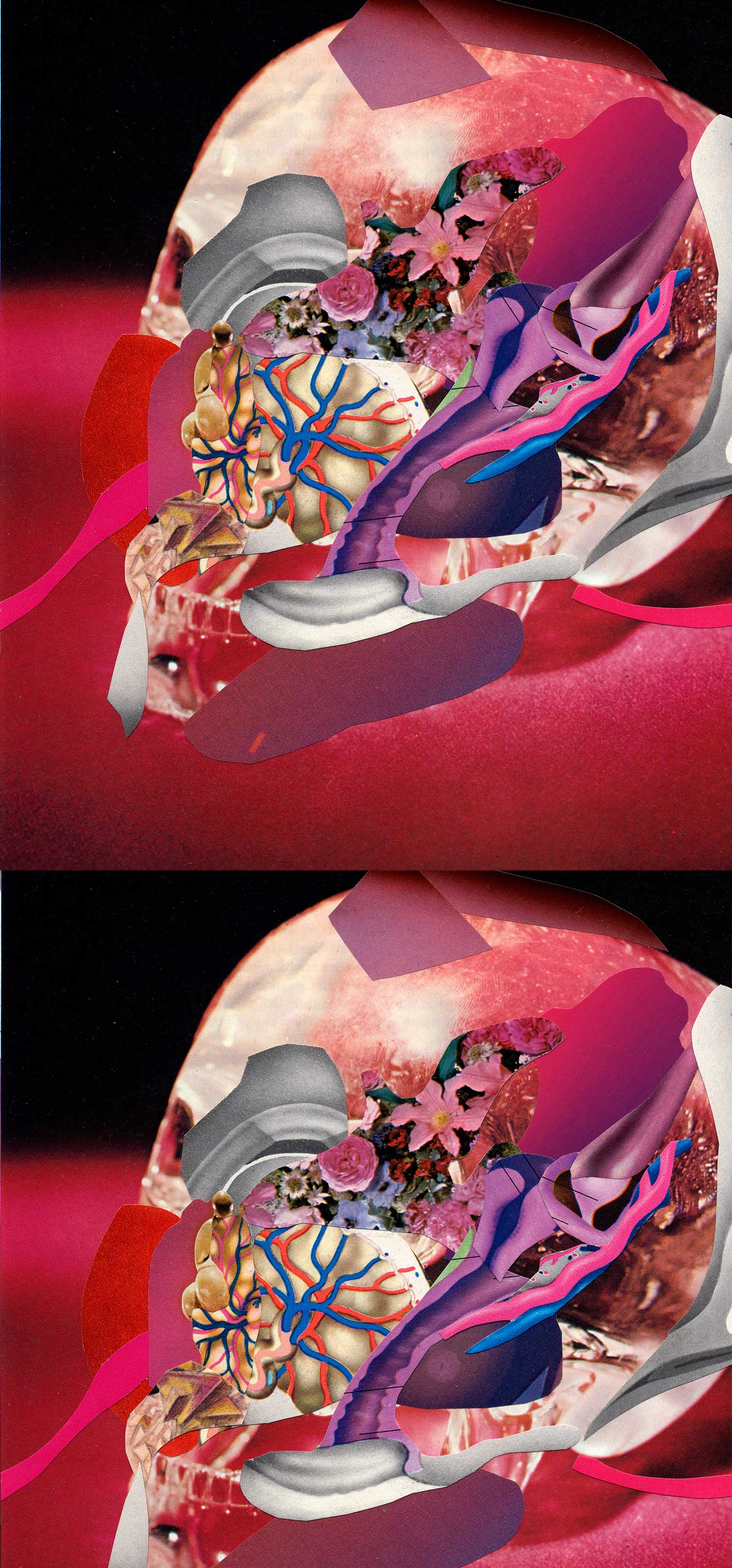 La série VACHE COSMIQUE interroge l’unité de l’espace et du temps via un médium qui véhicule habituellement une séparation arbitraire entre ces deux concepts. Si la photographie a usuellement tendance à vouloir arrêter le temps, le figer, ces séries l’actualisent en proposant au spectateur non pas un cliché d’un temps passé dans un espace circonscrit mais une expérience présente d’un corps pris dans un temps qui se déroule avec plus ou moins de rapidité en fonction de sa localisation spatiale. De plus, ces productions, plutôt qu’une succession, présentent une surface d’un cinétisme statique, qui n’est pas sans rappeler celle du panoptique, comme si l’ensemble des photogrammes qui constitue un film était présenté de manière synchronique. Le sujet photographique qui semble absent n’est autre que la poétique (poïès : faire) même de la prise de vue. S’il n’y a rien à voir sur ces montages c’est que leur réalisation est leur propre sujet.
